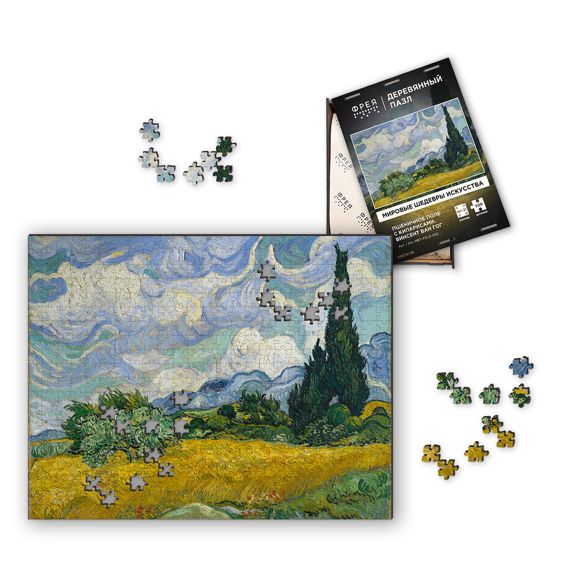 " ФРЕЯ" MET- PZLD- 002 Пазл деревянный " Пшеничное поле с кипарисами, Винсент ван Гог." 500 элемент.