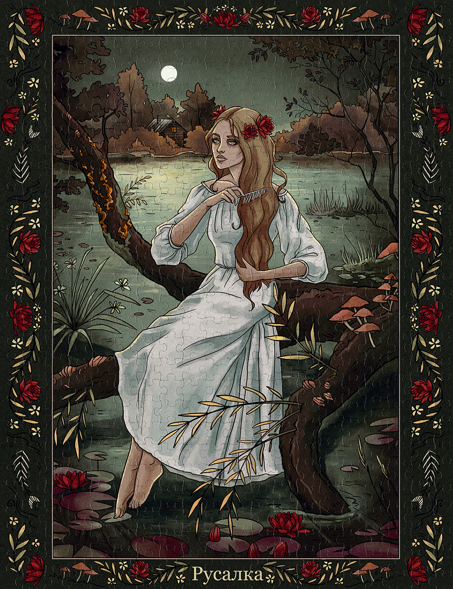 Пазлы ТМ Фрея - это яркие, интересные, увлекательные дизайны. Специально для вас мы разработали уникальную серию картин " Славянская мифология". Готовый пазл с таким сюжетом может стать интересным и необычным украшением интерьера. Также пазлы ТМ Фрея будут отличным подарком для ваших близких. Детали пазлов этой серии толще обычных. Для изготовления деталей мы используем европейский картон премиум качества. Такой картон не деформируется и не расслаивается даже при многократной сборке пазла. Размер готовой работы может отличаться от указанной на сайте. Актуальная информация размещена на упаковке товара. Русалка - персонаж славянской мифологии в виде девушки с длинными распущенными волосами, одетой в неподпоясанную свадебную рубаху. Вопреки образу, сформировавшемуся в массовой культуре, в славянской мифологии русалка никогда не была обладательницей рыбьего хвоста. Таким аксессуаром обладают другие водяные девы - фараонки или сиренки. Считалось, что русалки опекали леса, поля и воды. Сообщить о неточности в описании
