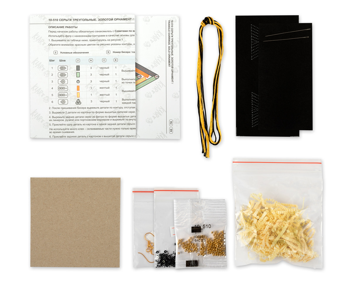 " Klart" набор для вышивания 10- 510 " Серьги треугольные. Золотой орнамент"