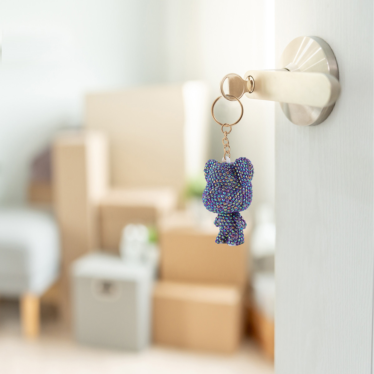 Кристальная ( алмазная) мозаика " ФРЕЯ" ALVF- 005 брелок " Фиолетовый мишка" 5. 5 х 6. 5 см