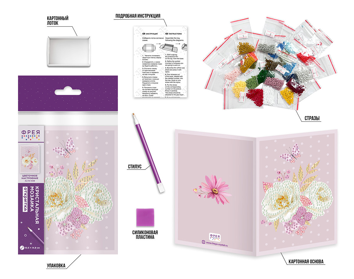 Кристальная ( алмазная) мозаика " ФРЕЯ" ALVO- 608 открытка " Цветочное настроение" 10. 5 х 14. 8 см